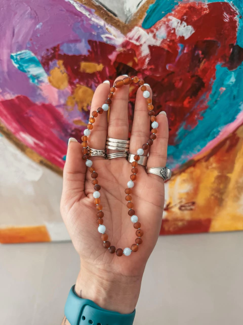 Este modelo está elaborado con ámbar báltico original, una resina vegetal fosilizada hace 35 millones de años, que contiene ácido succínico, un analgésico natural que actúa en contacto con la piel, aliviando molestias y ayudando a fortalecer el sistema inmunológico.